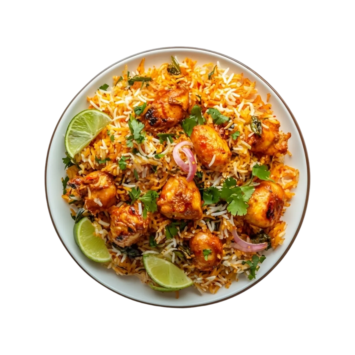 Rice cooked with tender chicken pieces and simple spices for a rich, savory flavor.