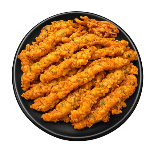 Tender bite-sized chicken nuggets, crispy on the outside and soft inside.